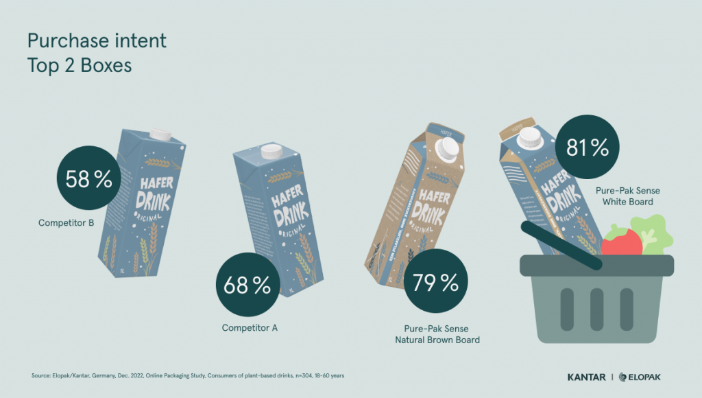 The study also showed that the lower the carton’s carbon footprint, the more attractive it is to plant-based drink shoppers. It notes that gable top cartons stand out most on the shelf compared to other packaging for plant-based drinks thanks to their unique shape.