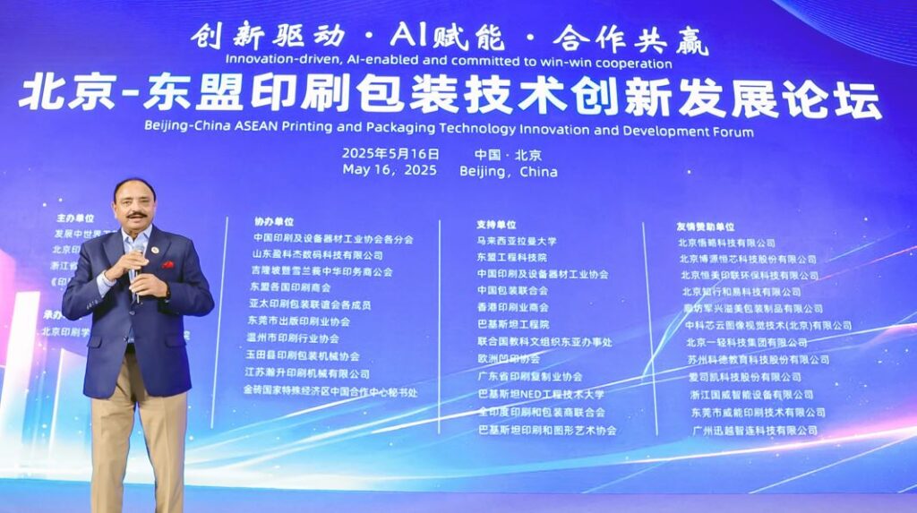 In a defining moment for India’s printing and packaging industry, Prof. Kamal Mohan Chopra, an eminent educationist, technocrat, and global ambassador of Indian printing, proudly represented the country at the 1st ASEAN Printing & Packaging Technology Innovation and Development Forum (CAPPTIDF) held on May 16, 2025, in Beijing, China. The event, titled Beijing – CAPPTIDE, marked a new chapter of international cooperation, bringing together global industry leaders, scholars, and innovators to discuss the future of printing and packaging through the lens of technology, sustainability, and collaboration.The CAPPTIDF was not merely a conference—it was a platform of purpose, attracting participation from renowned institutions and organizations across the globe. Supported by 12 prestigious institutions—including BIGC, the Printing and Printing Equipment Industries Association of China (PEIAC)—and endorsed by international bodies like the UNESCO Regional Office for East Asia, the ASEAN Academy of Engineering and Technology, and India’s very own All India Federation of Printers and Packagers (AIFPP), the event carried immense global significance.