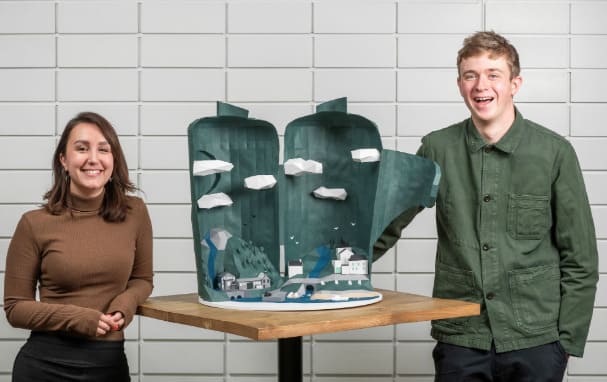 There are few more powerful demonstrations of this than the Message in a Wrap project. This two-year project celebrated the moulded fibre wrap James Cropper produced in collaboration with Bruichladdich whisky. In it, Nathan and James Cropper worked together to craft a stunning 3D diorama depicting James Cropper’s iconic Burneside mill alongside the picturesque Bruichladdich distillery, capturing the scene in paper and moulded fibre.