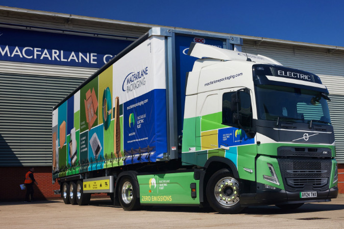 The modernisation of the delivery fleet of Macfarlane Packaging, the leading supplier of protective packaging in the UK, and growing in Europe, has accelerated with the addition of five more fully electric trucks – including an articulated lorry with an extensive range.